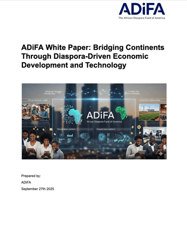 The African Diaspora Fund of America (ADiFA) is a FinTech company poised to unlock the multi-trillion dollar economic potential between the African diaspora and the African continent. While remittances are strong, direct, wealth-building investment remains blocked by antiquated financial systems, high fees, and a lack of trusted, accessible platforms. For Black Americans seeking to relocate or invest in Africa, this friction is a primary barrier to economic participation.